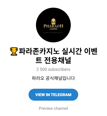 파라오슬롯 공식 텔레그램 채널에 가입하면 추가 보너스가 더해집니다. 첫입금과 재입금 시 5% 쿠폰이 지급되고, 루징 쿠폰 역시 강화됩니다. 특히 잭팟 500배 달성 시 2만 원 쿠폰이 지급되는 이벤트와 후기, 추천인, 미션 등 다양한 전용 이벤트가 진행됩니다.
